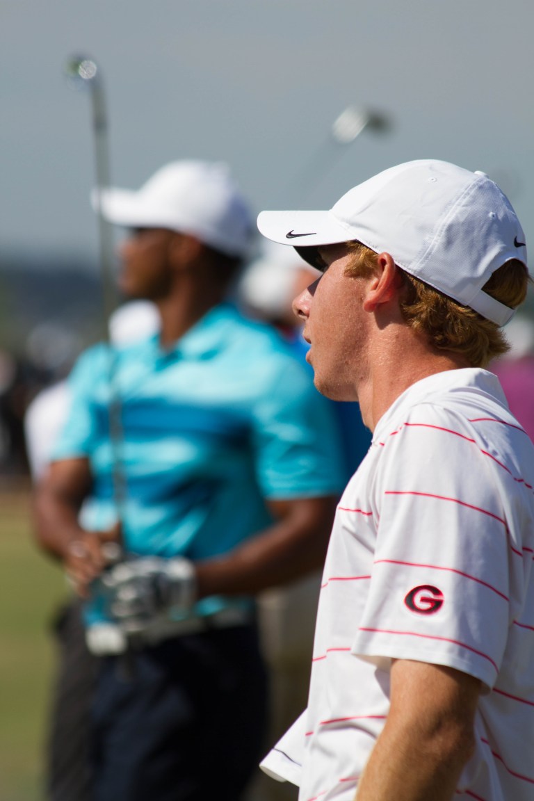 Lee McCoy and Tiger Woods at the Practice Tee